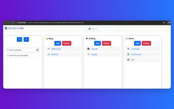 Quick Links เป็นส่วนขยาย Chrome ฟรีที่ออกแบบมาเพื่อเพิ่มประสิทธิภาพการจัดระเบียบบุ๊คมาร์คและการจัดการงานผ่านอินเทอร์เฟซแบบ Kanban เครื่องมือนี้ช่วยให้ผู้ใช้สามารถมองเห็นบุ๊คมาร์คของตนในคอลัมน์ที่ปรับแต่งได้ ทำให้การจัดประเภทและการจัดลำดับความสำคัญเป็นเรื่องง่าย ด้วยการสนับสนุน todo ที่รวมอยู่ Quick Links ช่วยให้ผู้ใช้สามารถจัดการงานของตนควบคู่ไปกับบุ๊คมาร์ค สร้างกระบวนการทำงานที่สอดคล้องกันซึ่งเพิ่มผลผลิต